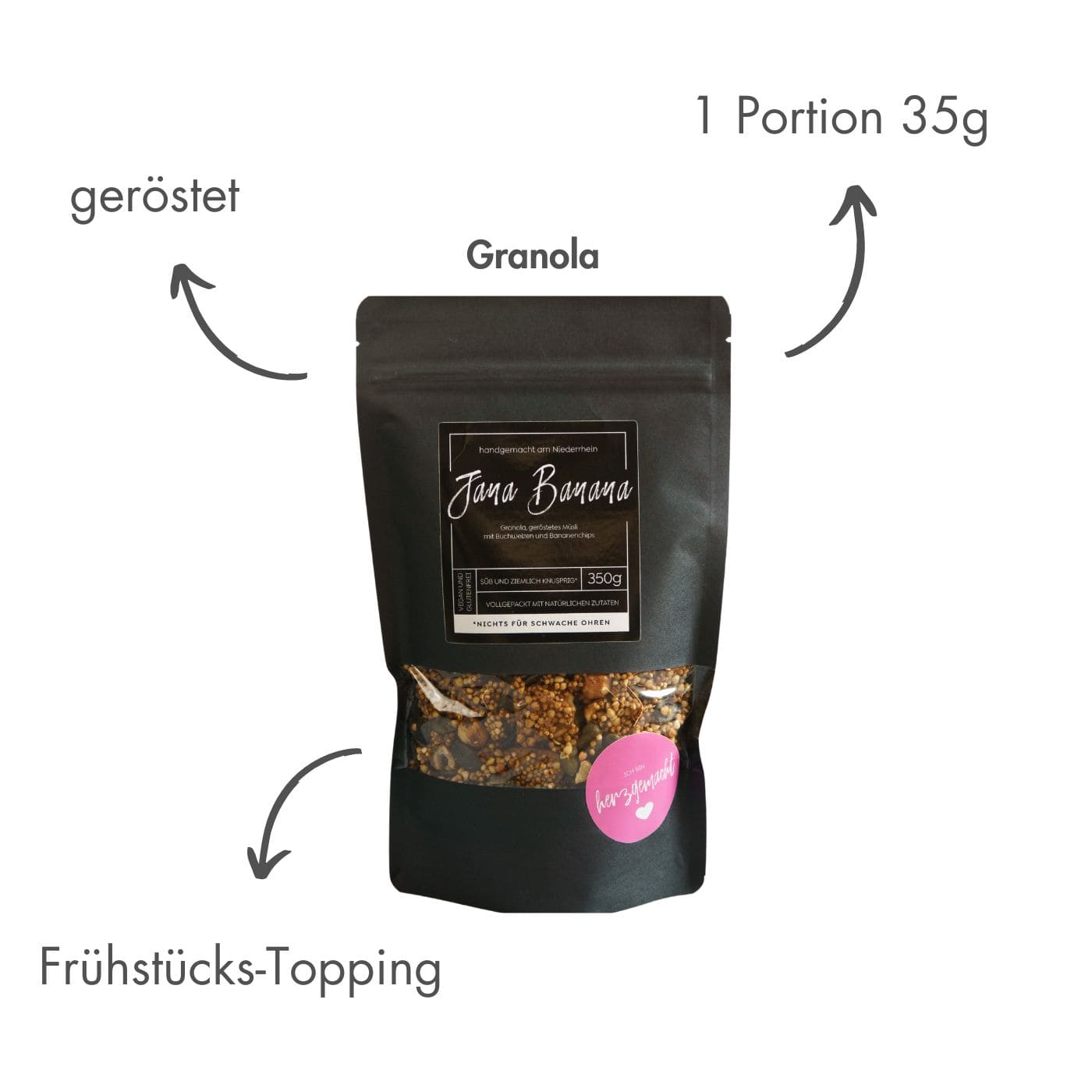 Das ist natürlich Geschmackssache. Wir mögen Granola am liebsten mit Joghurt oder Quark und Obst, auf Overnight-Oats, Porridge, Smoothiebowls oder Pancakes, Waffeln. Auf unserem Blog findest du ganz viele tolle passende Rezepte.