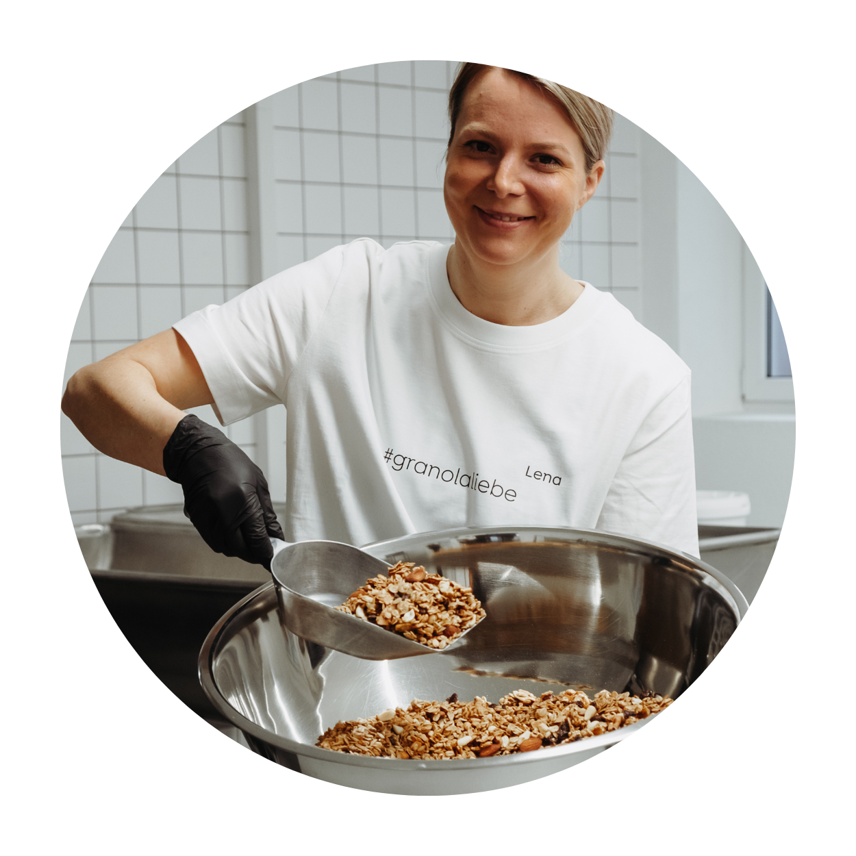 Wir stellen alle Granolas selbst in unserer kleinen Manufaktur her. Wenn du wissen möchtest, wie die Produktion im Detail aussieht und welche einzelnen Schritte notwendig sind, bis das fertige Produkt abgefüllt und bei dir Zuhause auf dem Frühstückstisch landen kann, erfährst du hier.